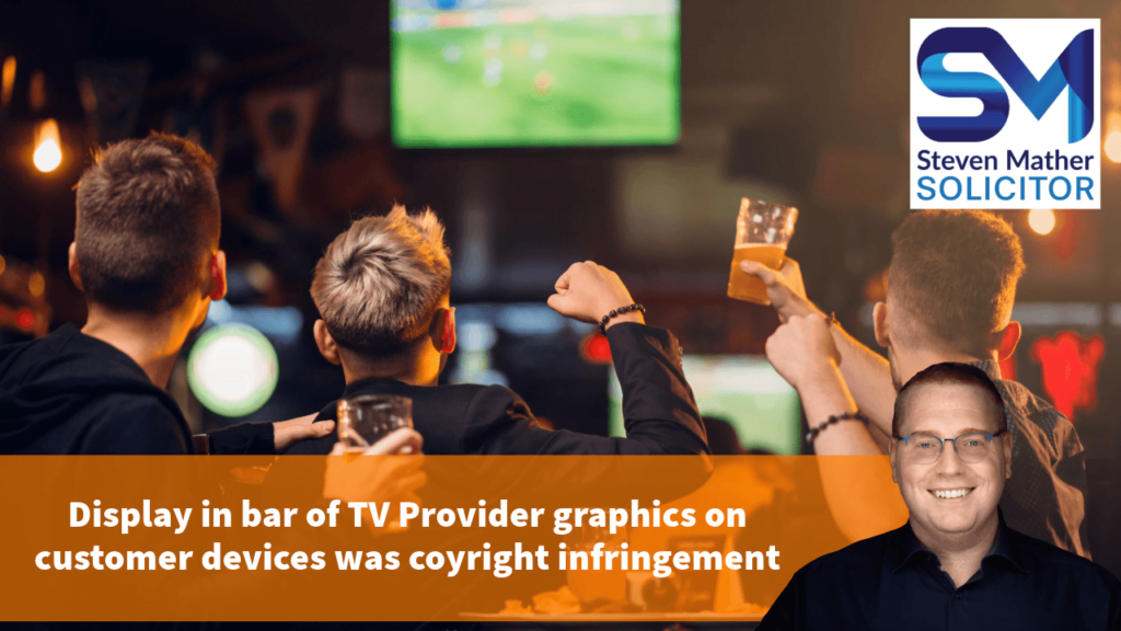 In Sky Ltd v Airlie [2024] CSOH 22, the Court of Session in Scotland held that the display in a bar of TV provider graphics on broadcasts shown on customer devices infringed copyrights in the graphics.