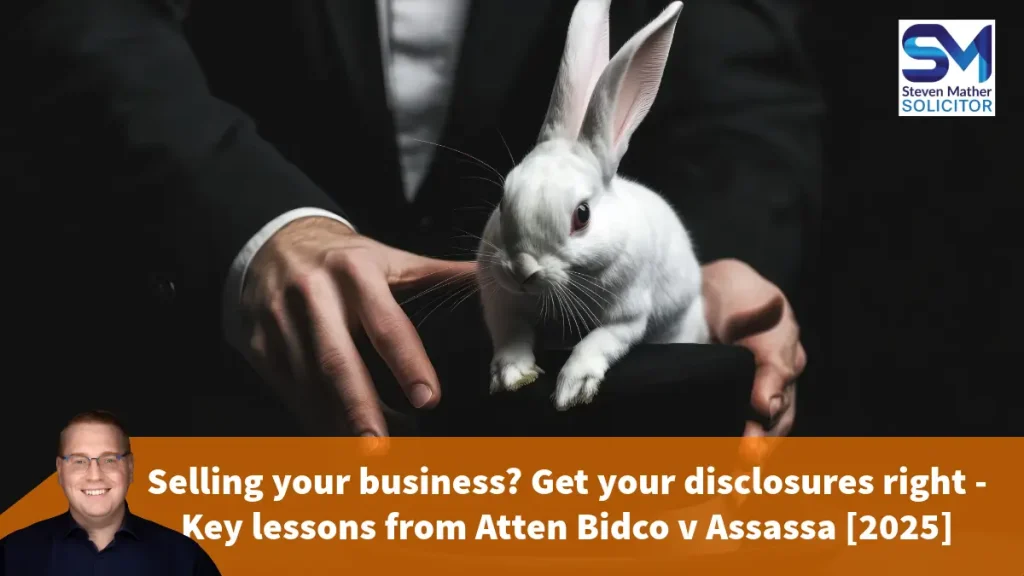 Selling a business is about more than just agreeing a price. The warranties and disclosure process are just as important as the headline deal. The Atten Bidco case underlines that sellers who cut corners, rely on informal chats, or assume the buyer “knows” the risks, leave themselves dangerously exposed.